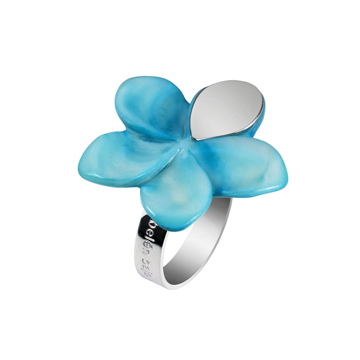 Anillo artesanal de plata de ley de 925 milésimas y nácar cyan.