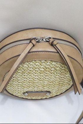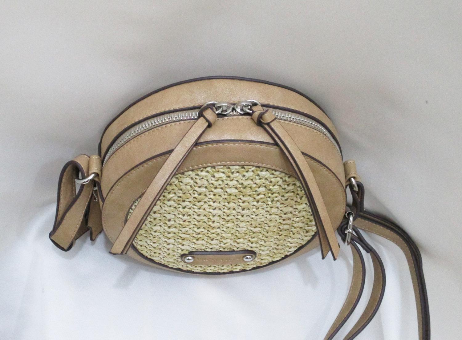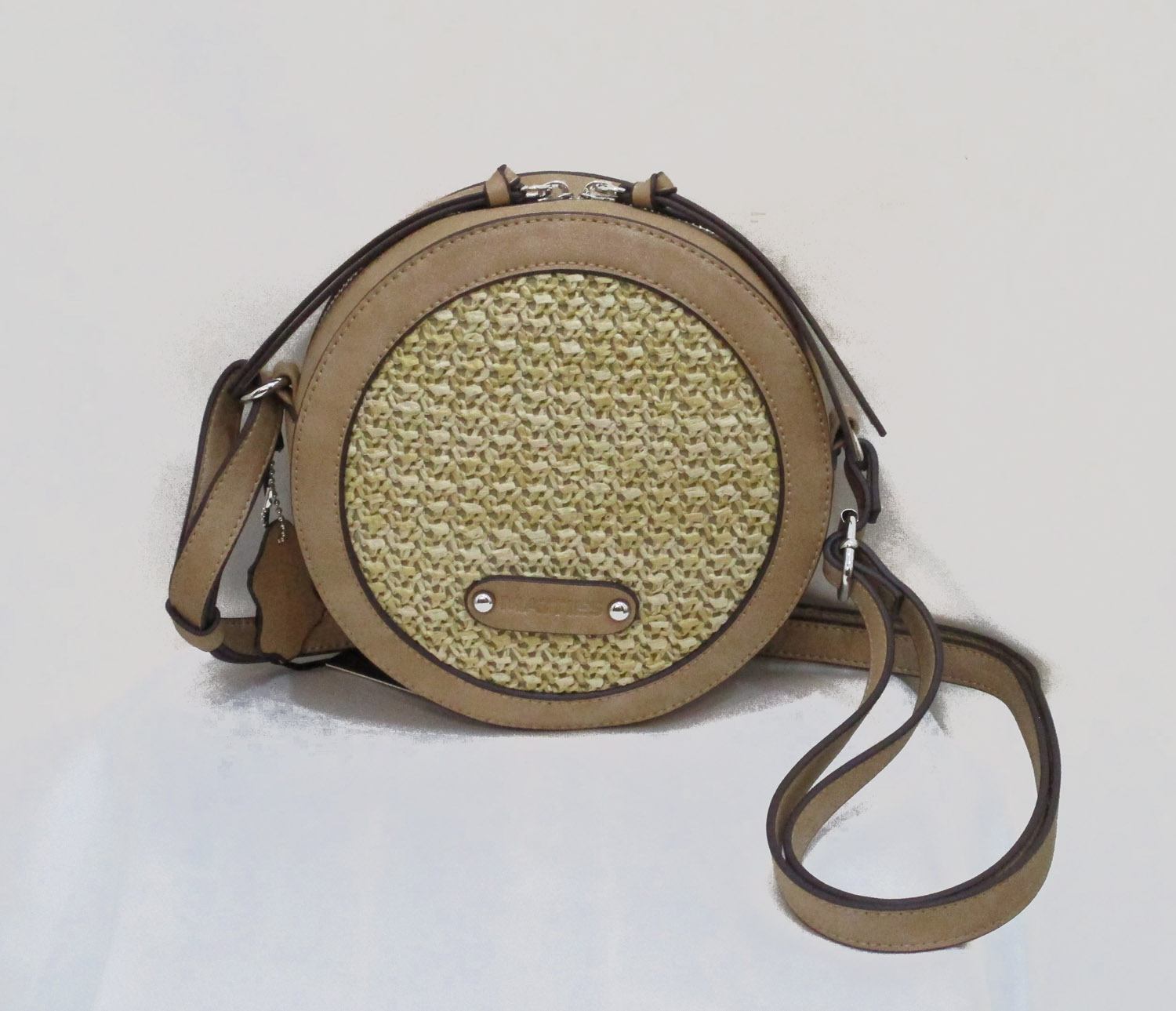 Bolso/bandolera redondo, tamaño pequeño. Con zona rafia
