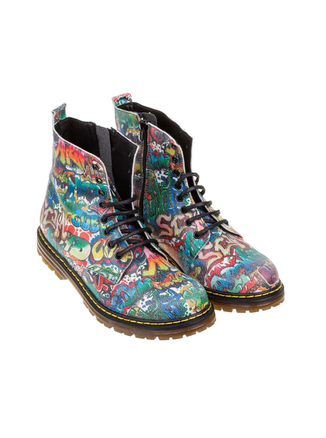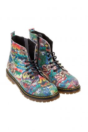El color rojo es la bota con estampado de grafiti.