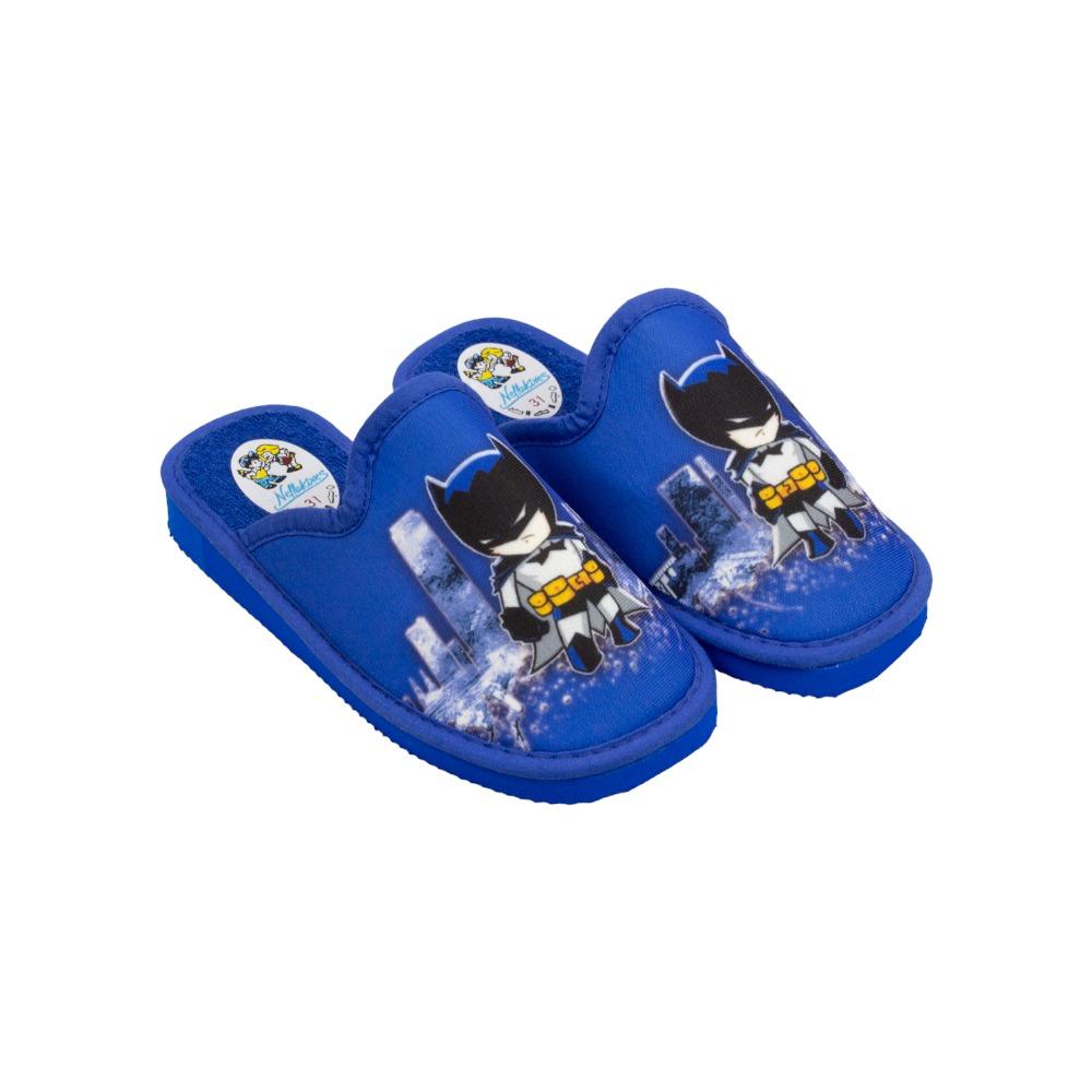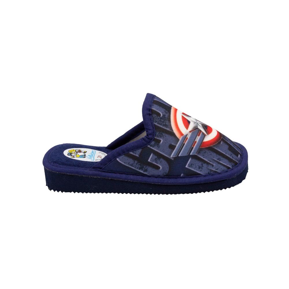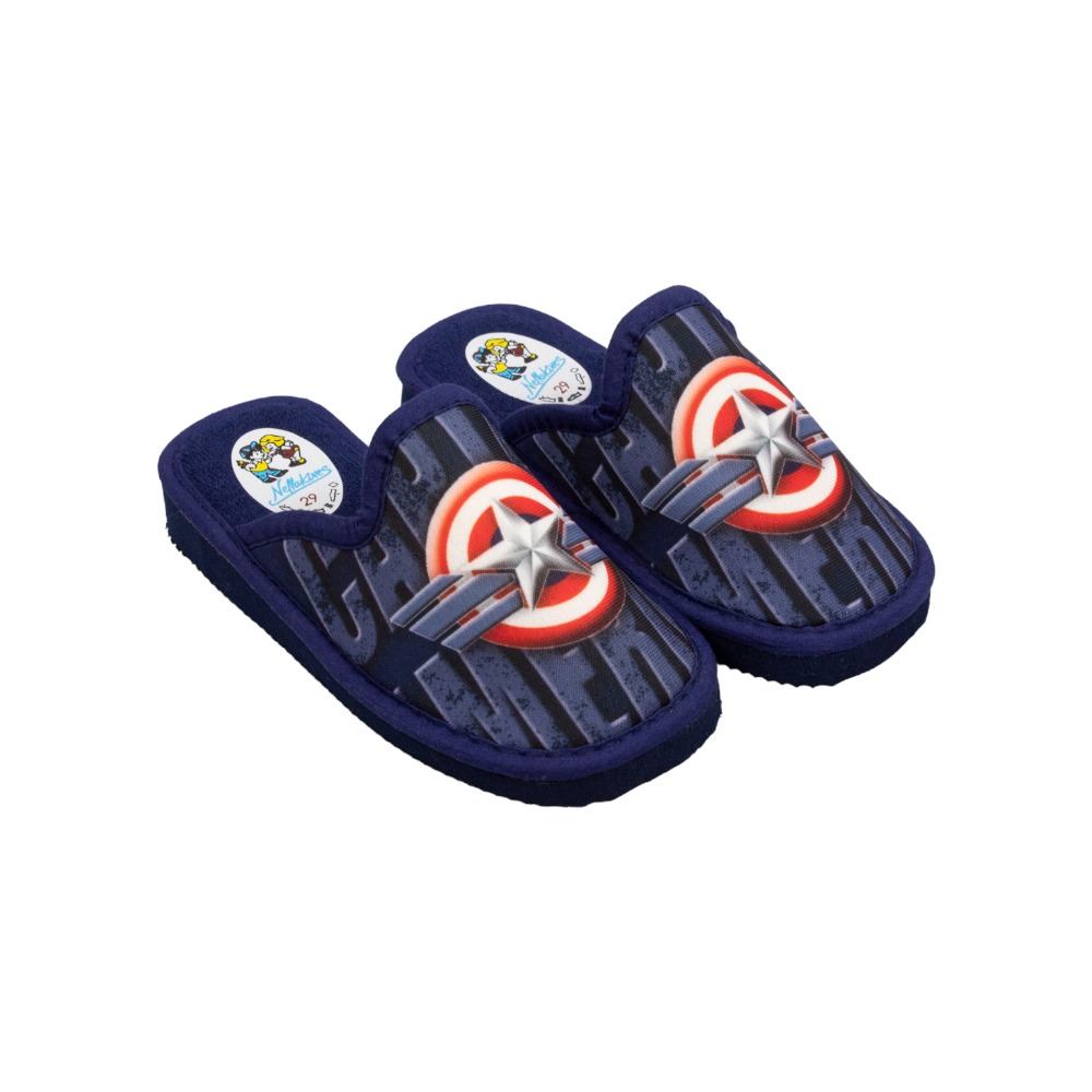 Zapatilla de estar por casa para niños con estampado de superhéroes en color azul, rojo y azul marino. Fabricadas con tela toalla muy fresca y transpirable; suela muy ligera, para que las pequeñas de casa estén cómodas todo el verano. Calza normal, punta cerrada. Hecho en España.