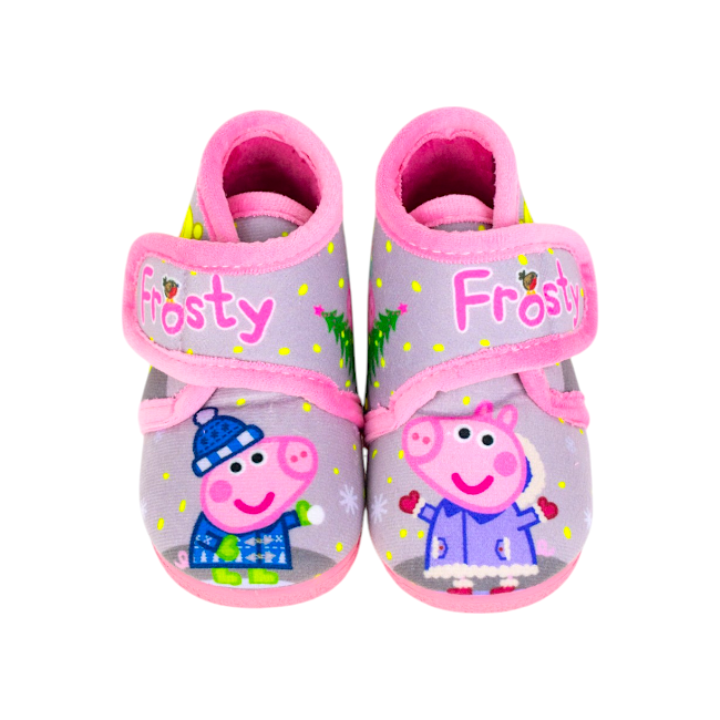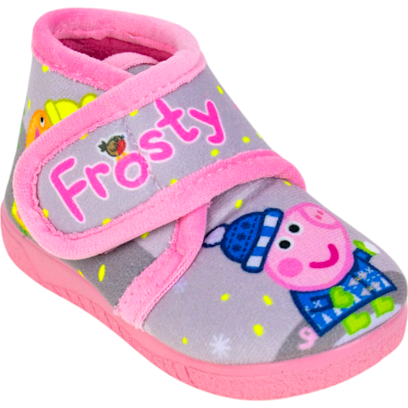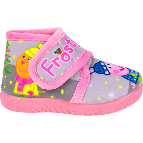 Las zapatillas de bota para niñas tienen un bonito estampado de cerdita en la nieve, cierre de velcro ajustable y suela de caucho, que es antideslizante y flexible. Su forro calentito las hace perfectas para el Invierno. Hechas en España. Calza normal.