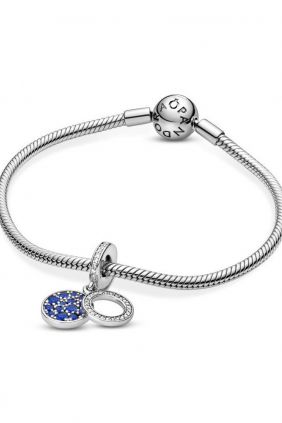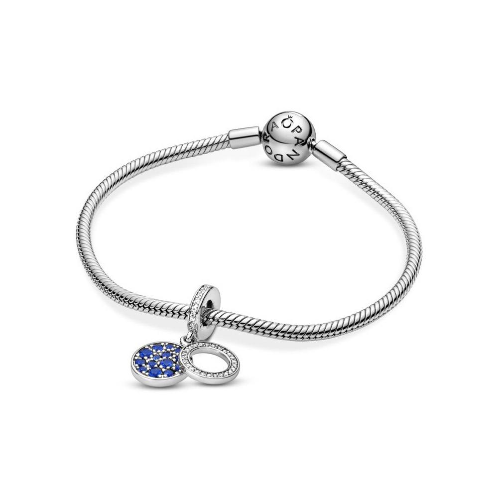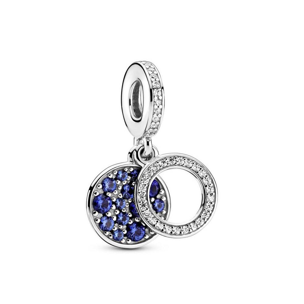 Charm colgante Disco Azul, en plata de primera ley, adornado con circontas azules y transparentes