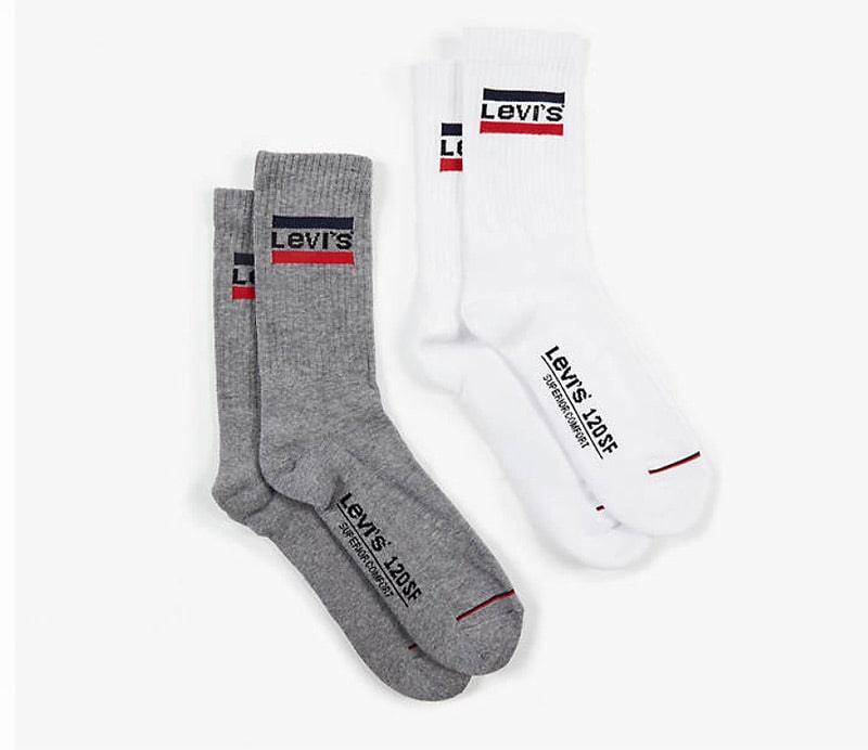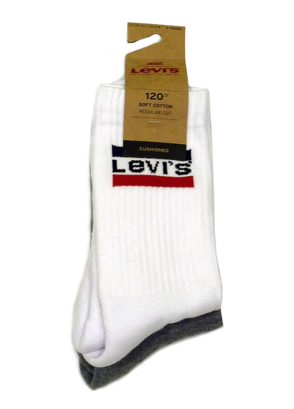 Nuevo Pack de 2 pares de calcetines Levis en blanco y gris.