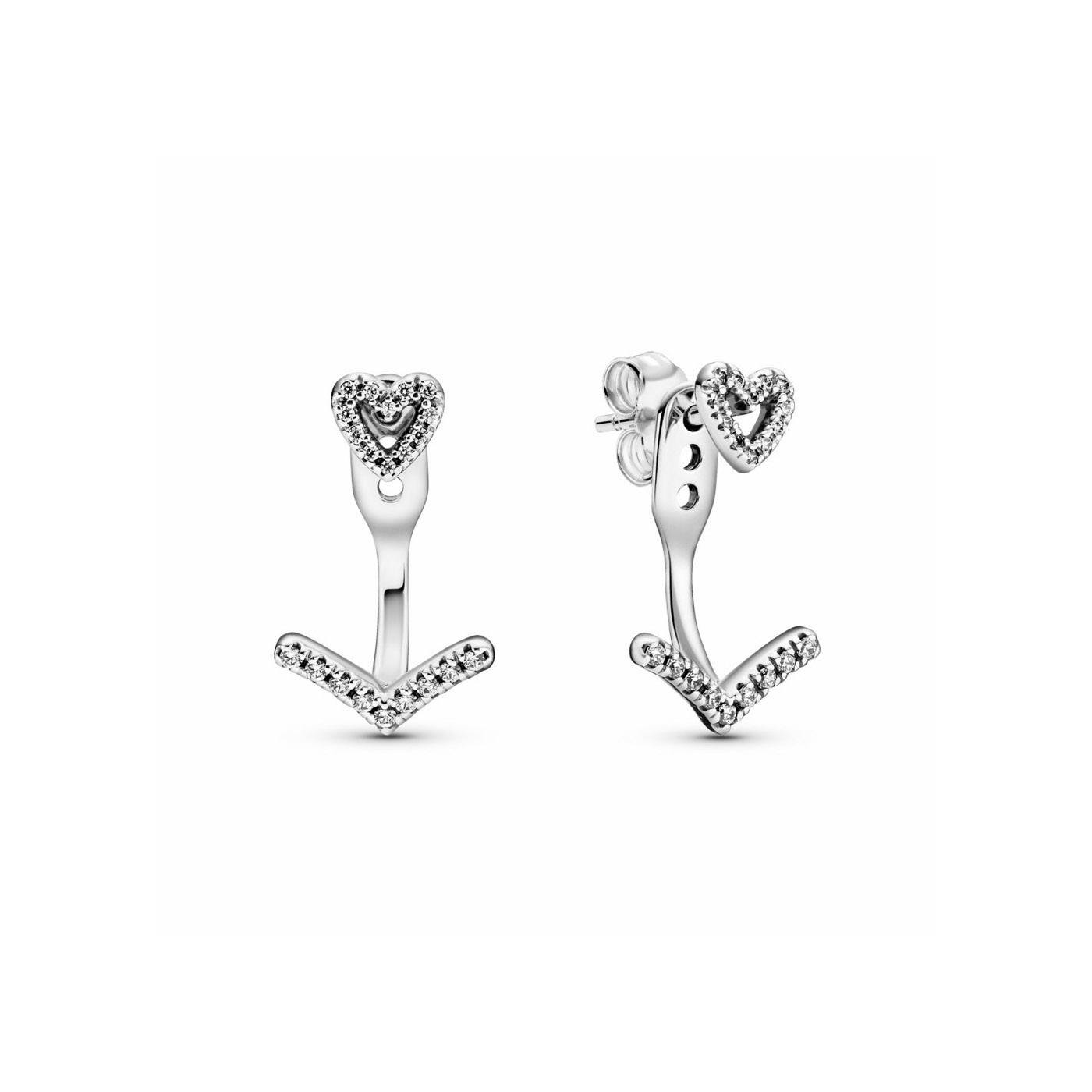 Pendientes de botón Corazón Espumoso Brillante Pandora, en plata de primera ley, ajustables a tres alturas diferentes y adornados con circonitas cúbicas transparentes