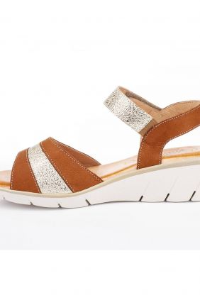 Sandalia de piel de la línea de confort de la marca Valeria´s. Cuenta con plantilla de piel con acolchado gel, muy cómoda y acolchada. Tira blandita en la zona de los dedos y pulsera de cierre con velcro para mayor facilidad al calzarlo.