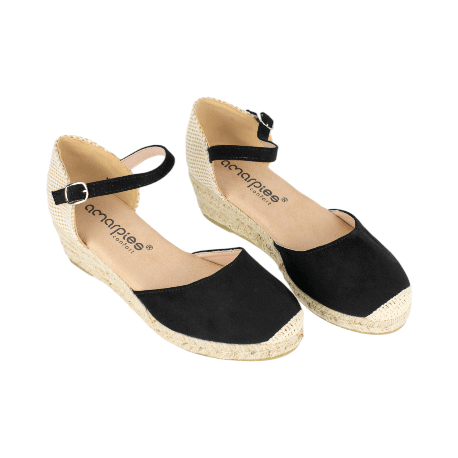 ¡Consigue un estilo único y comodidad incomparable con las cuñas de esparto Amarpies! Confeccionadas con tres cuerdas y una altura de 5cm, estas cuñas presentan una elegante punta remontada y un cierre de correa con hebilla para un ajuste perfecto.