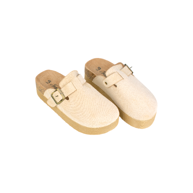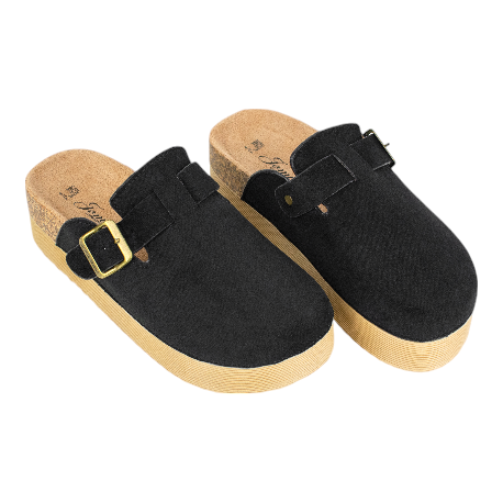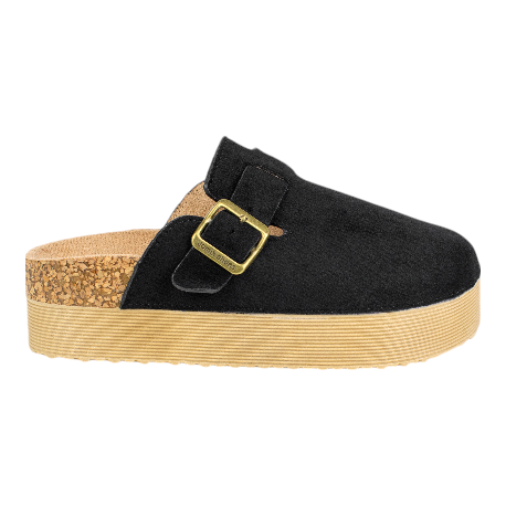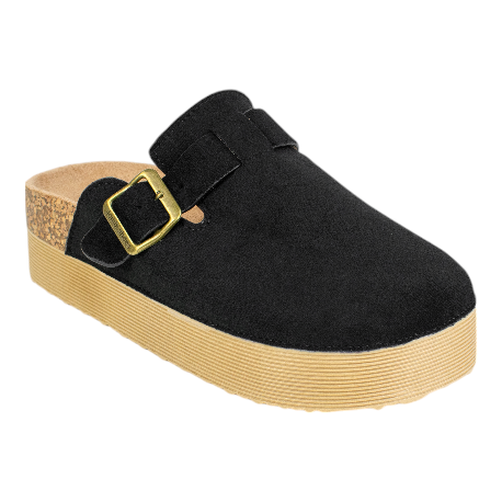 Luce a la moda con los zuecos de plataforma Jomix modelo MD1065. Confeccionados en tela de alta calidad, estos zuecos cuentan con una elegante hebilla dorada que añade un toque sofisticado.   Su plataforma de 4 cm de altura proporciona comodidad y estilo en cada paso. Ideales para combinar con cualquier atuendo, estos zuecos son la elección perfecta para quienes buscan tendencia y confort.   Calza normal.