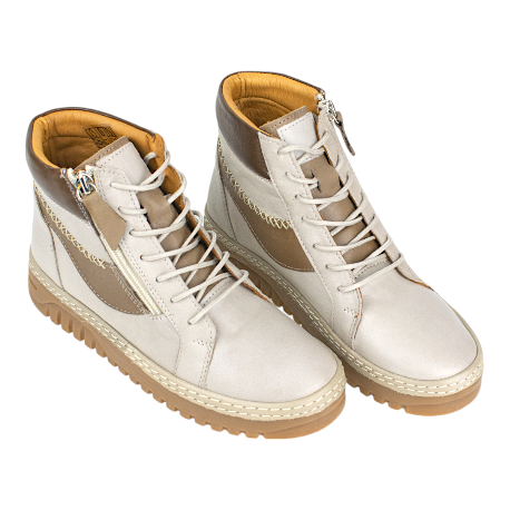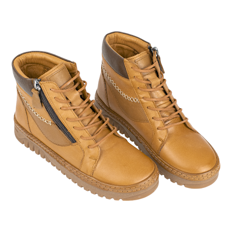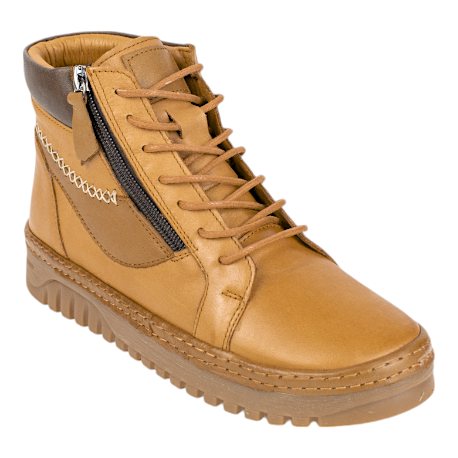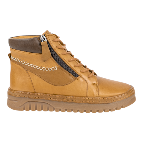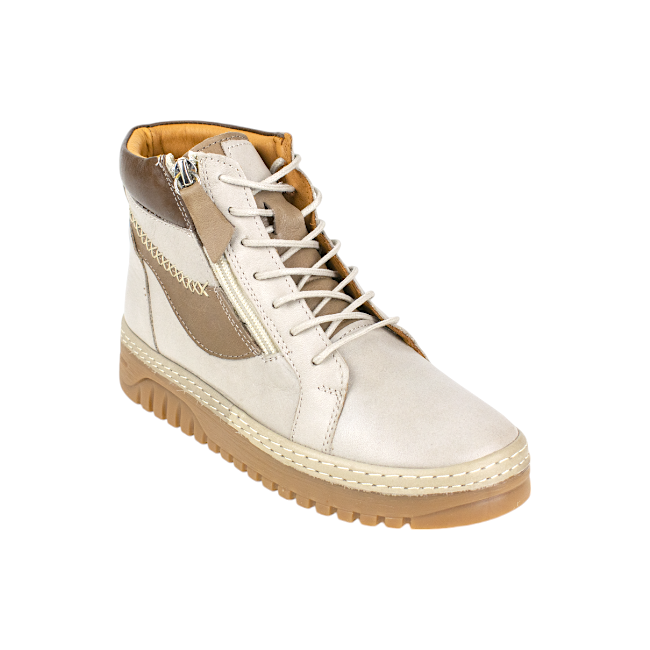 Descubre el máximo confort y estilo con los botines de piel 48 Horas, modelo 423905, diseñados para quienes buscan comodidad sin renunciar a una estética casual y moderna. Fabricados con materiales de alta calidad, estos botines cuentan con cosidos visibles que resaltan su toque artesanal y tacón plano de goma que garantiza un caminar suave y seguro.   Gracias a su doble sistema de cierre, con cordones para un ajuste personalizado y cremallera para mayor practicidad, se convertirán en tu calzado ideal para el día a día. Además, incluyen una plantilla extraíble, perfecta para quienes prefieren adaptarla a sus necesidades personales o usar plantillas ortopédicas.