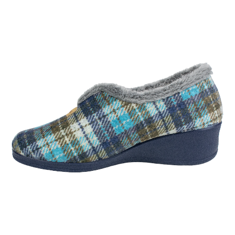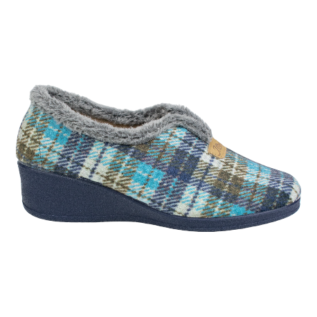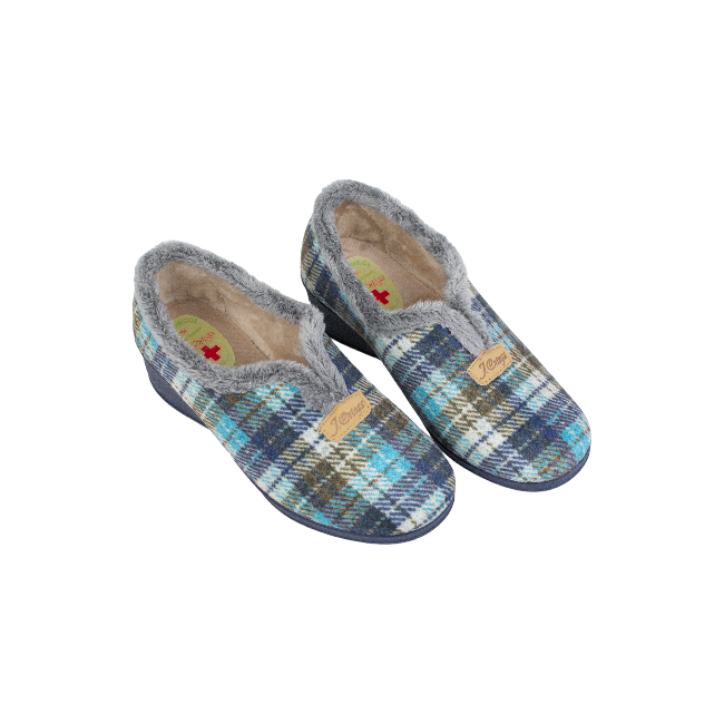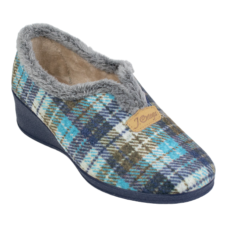 Zapatillas de Estar en Casa J.Ortega 1843 - Cuña 4 cm, Estampado a Cuadros Azules   Descubre el confort y el estilo con las zapatillas cerradas J.Ortega, modelo 1843. Con una cuña de 4 cm y un elegante estampado a cuadros azules, estas zapatillas te ofrecen:   - Plantilla anatómica para un soporte óptimo. - Forro cálido para mantener tus pies abrigados. - Suela de caucho duradera con buen agarre. - Corte en V para un ajuste cómodo. - Calza normal.   Fabricadas en España con la calidad que distingue a J.Ortega.
