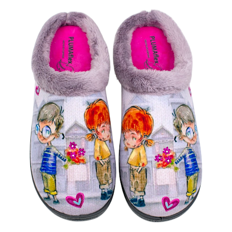 Añade un toque de dulzura y confort a tus momentos de descanso con las zapatillas de casa Plumaflex. Diseñadas para la mujer que valora tanto el estilo como la comodidad, estas zapatillas de casa abiertas cuentan con un adorable estampado de Enamorados, perfecto para crear un ambiente cálido y acogedor en casa. - Comodidad excepcional: La plantilla efecto gel super acolchada y extraíble proporciona un confort extraordinario, adaptándose a la forma de tu pie y garantizando un soporte óptimo durante todo el día. - Diseño abierto y práctico: Estas zapatillas permiten una mayor ventilación y un ajuste cómodo para que tus pies se sientan relajados. - Suela de goma antideslizante: La suela de goma ofrece una mayor seguridad y estabilidad al caminar por tu hogar, evitando resbalones y proporcionando un paso firme. - Hechas en España: Con materiales de alta calidad y con la tradicional artesanía que garantiza un producto duradero y de gran confort.